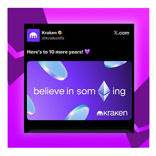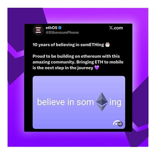 The Ethereum Foundation tweeted "believe in somETHing" on Ethereum’s 10-year anniversary and Ethereum themselves retweeted it, along with many major companies and projects in the space.