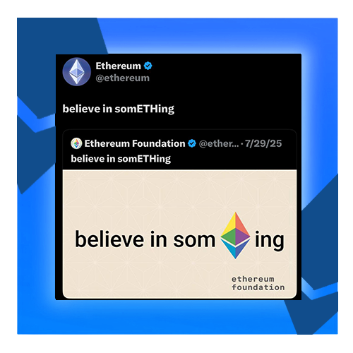 "believe in somETHing" is now spoken across the entire space. It’s a reminder that without belief, there is nothing. No Ethereum, no community, no project, just empty speculation.